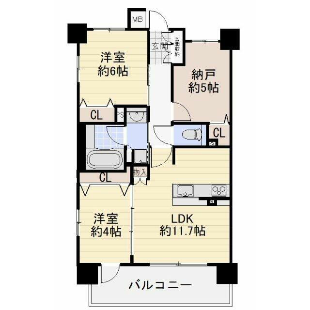 | 間取り(内訳) | 2SLDK(洋6、4、S5、LDK11.7) | ||